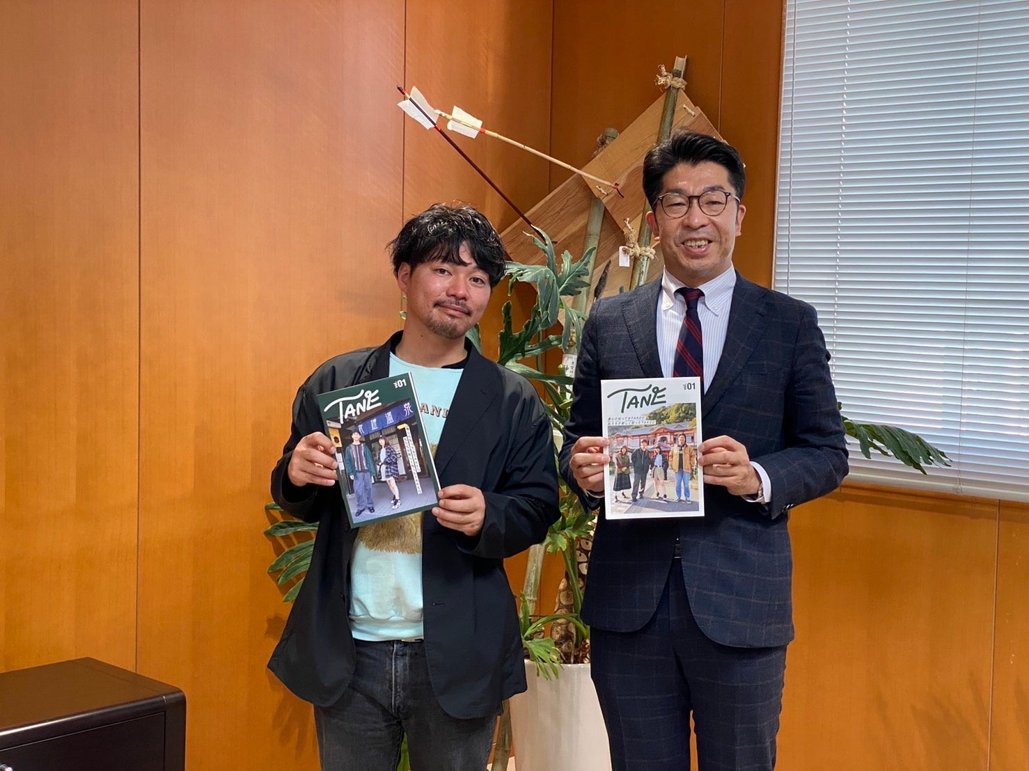 写真:TANEMAKI 宮﨑洋輔代表(左)と小松政市長(右)