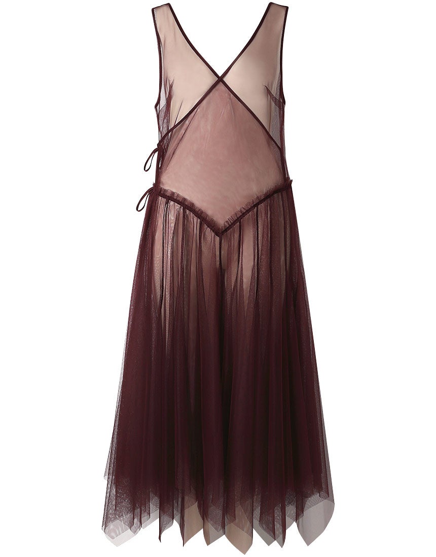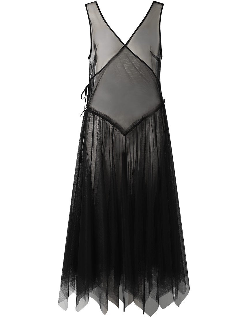 24枚ものチュールをつなぎ合わせた「Yue」定番のスカートを、「FETICO」らしくアップデートしたマキシ丈のカシュクールドレス。チュールの美しいグラデーションと、動きに合わせてさまざまな表情を見せる特殊な裾ラインが魅力です。