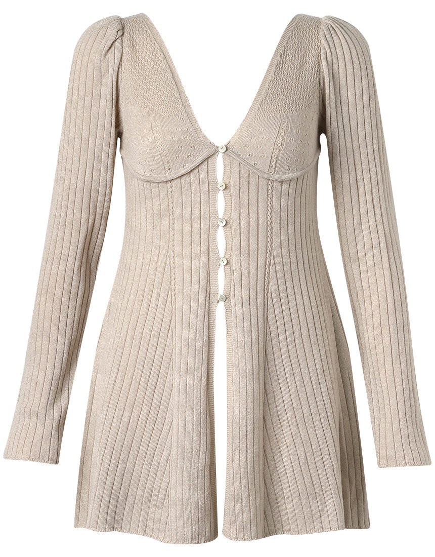 カップくりに合わせたループ使いやアンダーから伸びるダーツラインなど、ランジェリーから着想を得たディテールが造形美を引き立てます。