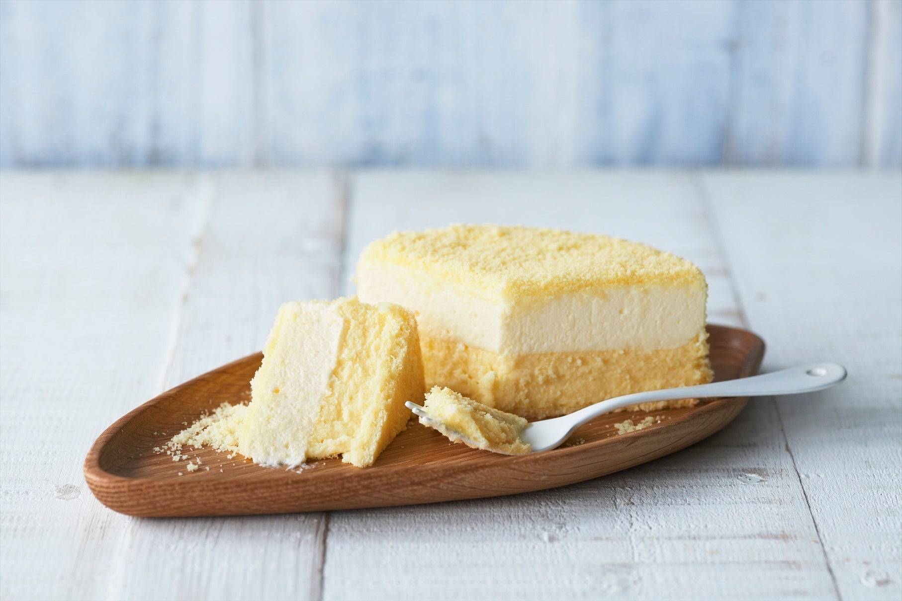 フレッシュなミルク本来の風味とほのかな甘みが特長のオーストラリア産クリームチーズを使ったベイクドチーズに、生クリームのような豊かな風味をもつ北イタリア産マスカルポーネのレアチーズを重ねた二層のチーズケーキです。世界から取り寄せたチーズと組み合わせるのは、豊かな乳味と後味が爽やかなルタオのオリジナル生クリームです。二層のチーズケーキと、北海道の雪をイメージさせるそぼろが口の中で一体となってとけていきます。