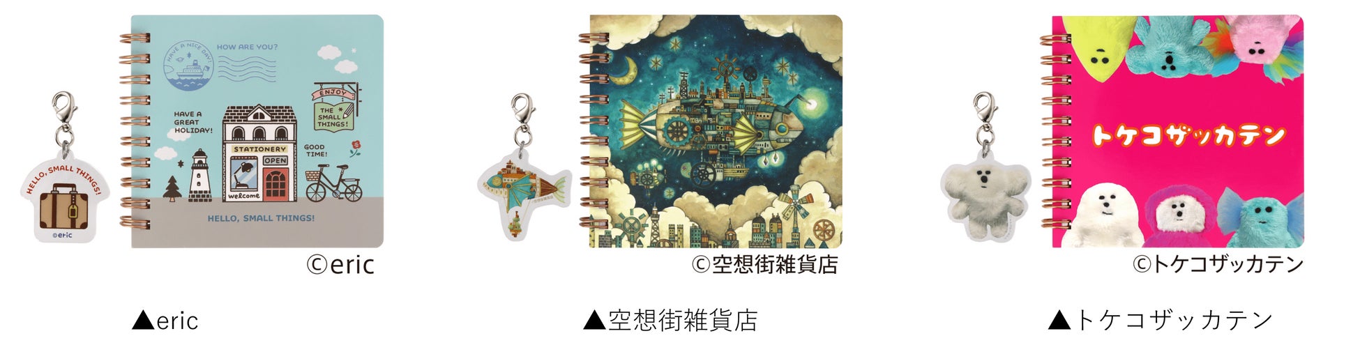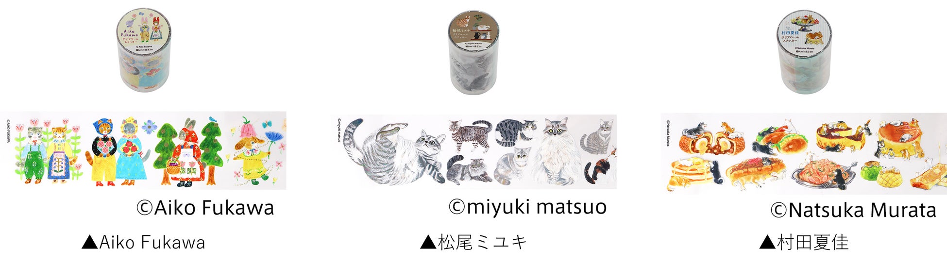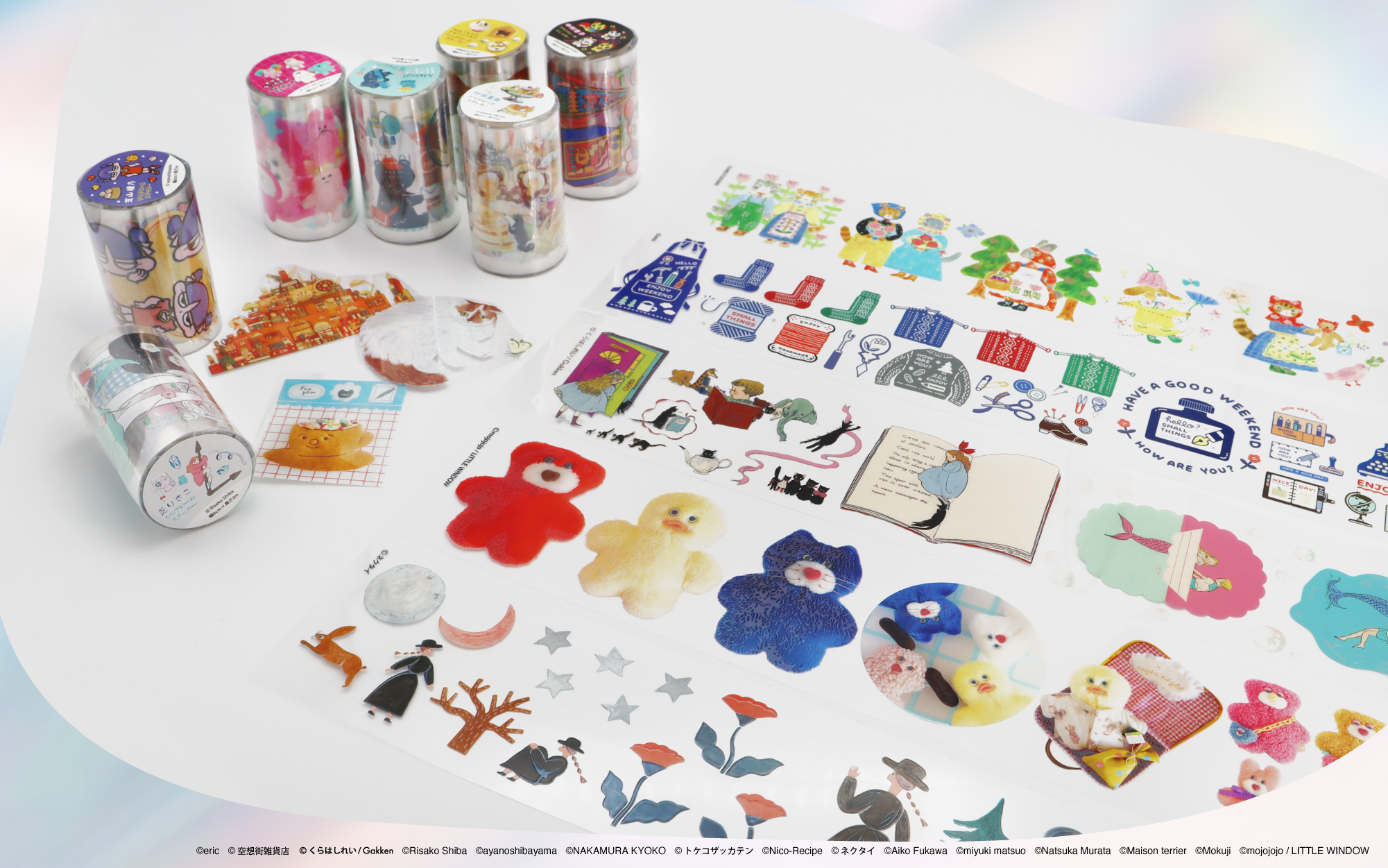 第1弾商品として、クリアロールステッカー(全15種類)、クリアスタンプ(全8種)、チャーム付ミニノート(全8種)を、2026年2月14日(土)に発売し、全国の書店、雑貨店、ECサイトにて、順次販売を開始します。