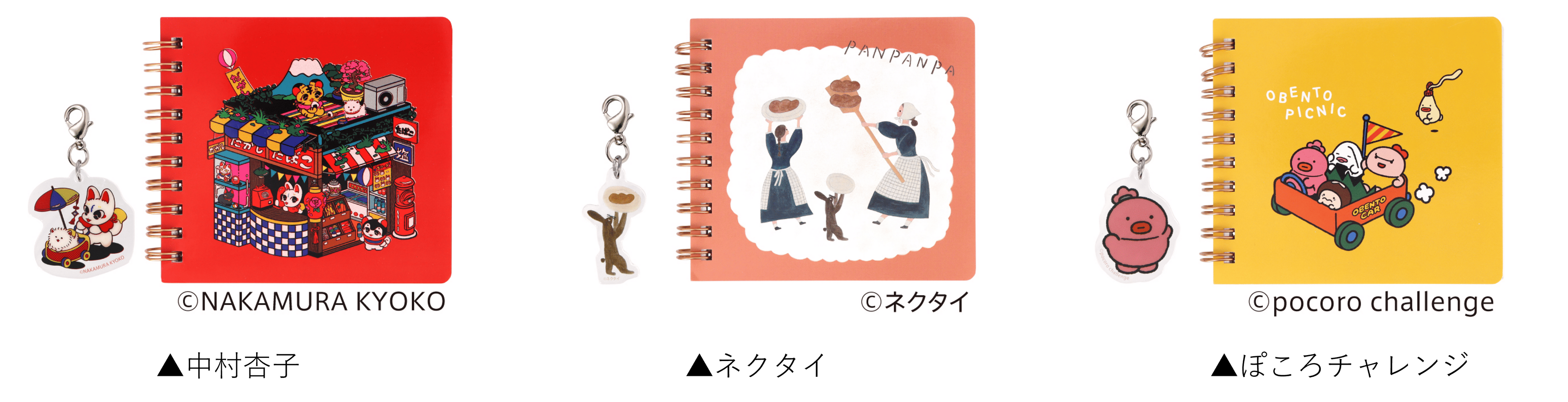 人気クリエイターのイラストを、表紙と、付属のチャームにデザインしたノートです。持ち歩きに便利な小さめのサイズと、かわいらしい正方形のフォルムが特徴です。ノートの中身は方眼のシンプルな紙なので、ライフログやジャーナリング、日記帳、推し活など、自由に使い方を決められます。