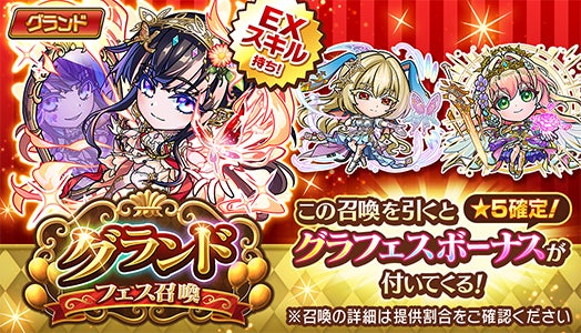 新たなグランドコトダマン「シヨウチヨウ(止揚の蝶)」が登場します。グランドコトダマンは非常に強力なとくせいやすごわざと、特殊な効果を発揮する「EXスキル」など、際立った能力を持っています。さらに「シヨウチヨウ(止揚の蝶)」は進化後に「モード・シフト」を所持し、編成画面で自由に「夢まで羽搏く・シヨウチヨウ(止揚の蝶)」または「夢の為の嘲笑・チヨウシヨウ(止揚の蝶)」に切り替えることができます。また、「グランドフェス召喚」では、特別なおまけとして、10連ごとに1回、開催中の「グランドフェス召喚」から出現する★5コトダマン1体を召喚のおまけとして獲得できる「グラフェスボーナス」が発生します。