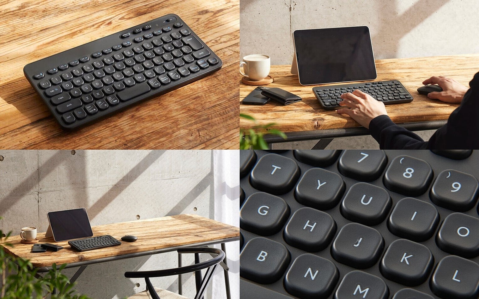 ▲ Bluetooth(R)タイプは有線・無線モデルとは独立したコンセプトでデザインされており、くすんだ色味や独自のフォントデザインがカフェやホームオフィスといったシーンで映える仕上がりです