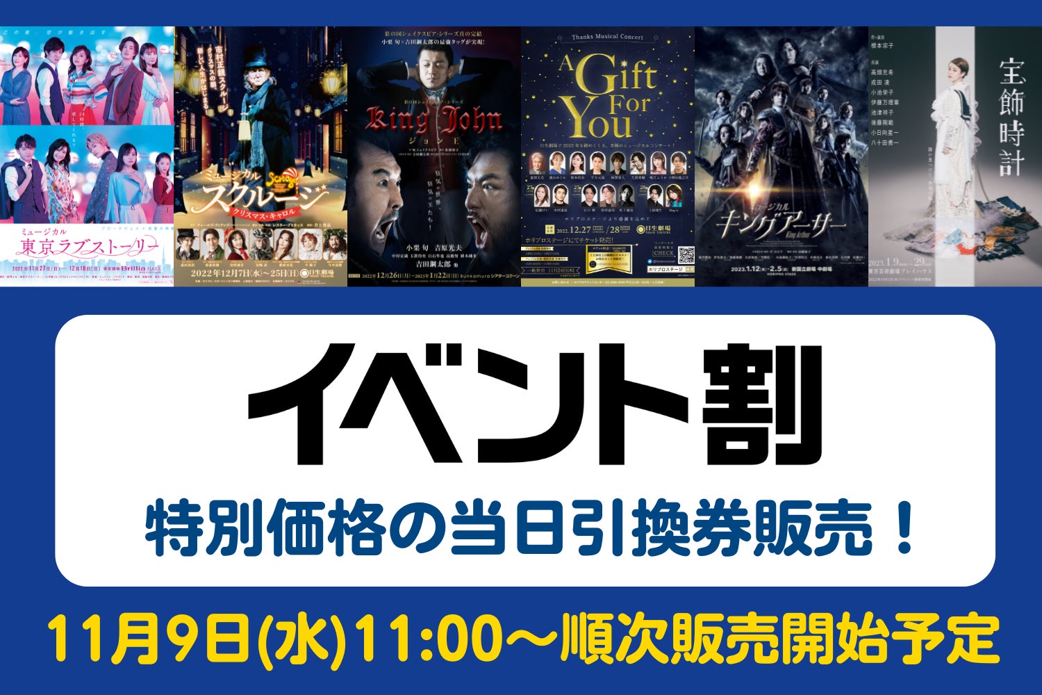 ・ ホリプロステージ(https://horipro-stage.jp/)の「チケット購入」よりログインし、公演名に※イベント割対象※と記載がある一般予約を選択してお求めください。