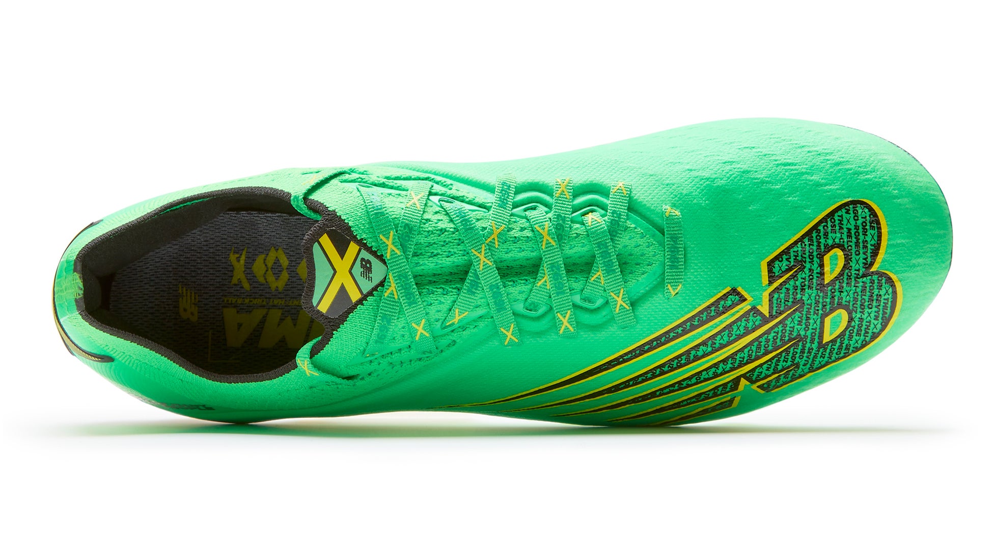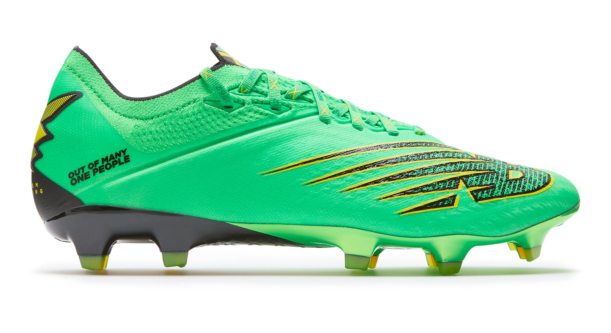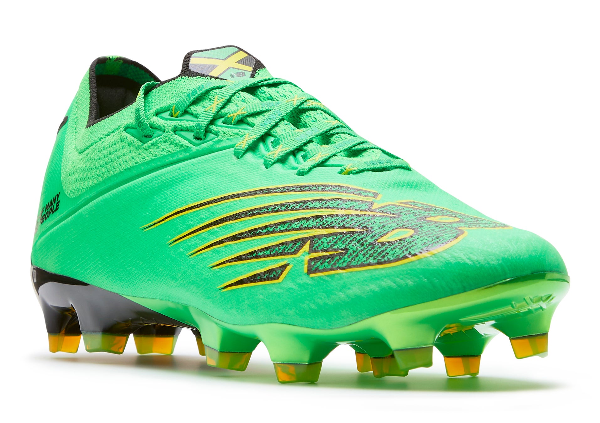 また「Out of Many, One People“様々な人種の壁を超えて、ひとつの国民になろう”」というジャマイカの国章に掲げられているモットーもデザインされ、グリーンとゴールドの鮮やかなカラーパレットがそれを引き立てています。タンにはジャマイカの国旗がプリントされ、これは彼がハットトリックを達成しそのボールを故郷ジャマイカの母親に何度も送ったことにちなんでいます。そして、シューレースには彼が生まれたキングストンとマーベリーの地名が記されています。