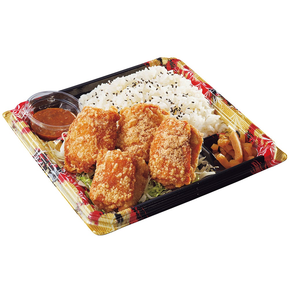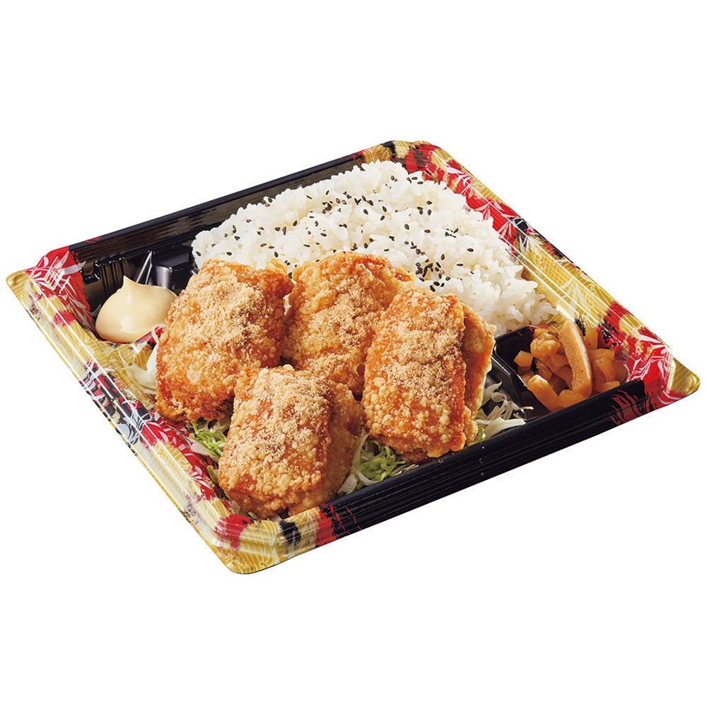 コンソメからあげ2個、カリッともも2個、千切りキャベツ、ごはん