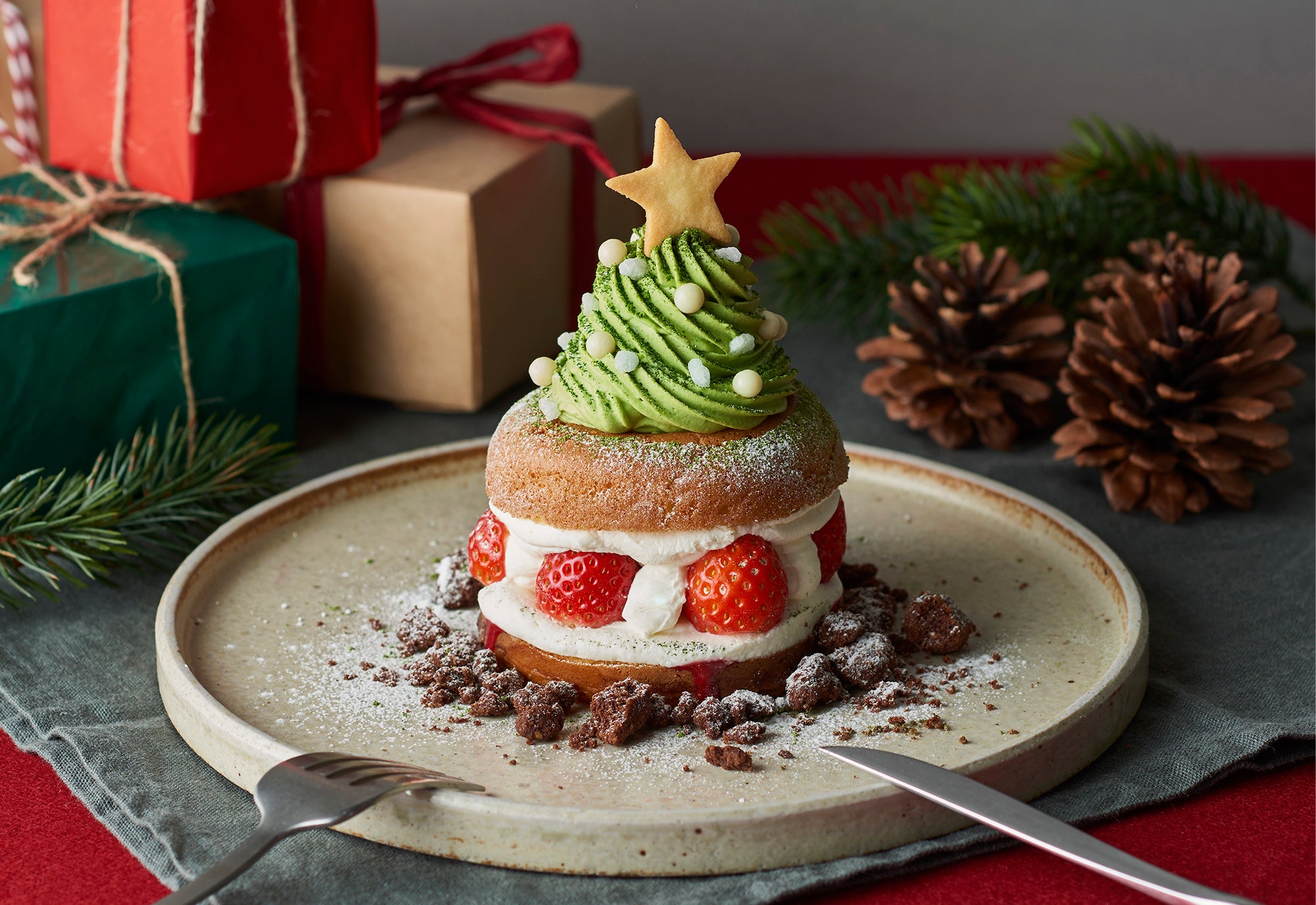 京都の日本茶専門店”YUGEN”の濃厚な宇治抹茶とたっぷりの生クリームを合わせた、美味しいツリーのドーナツメルト。