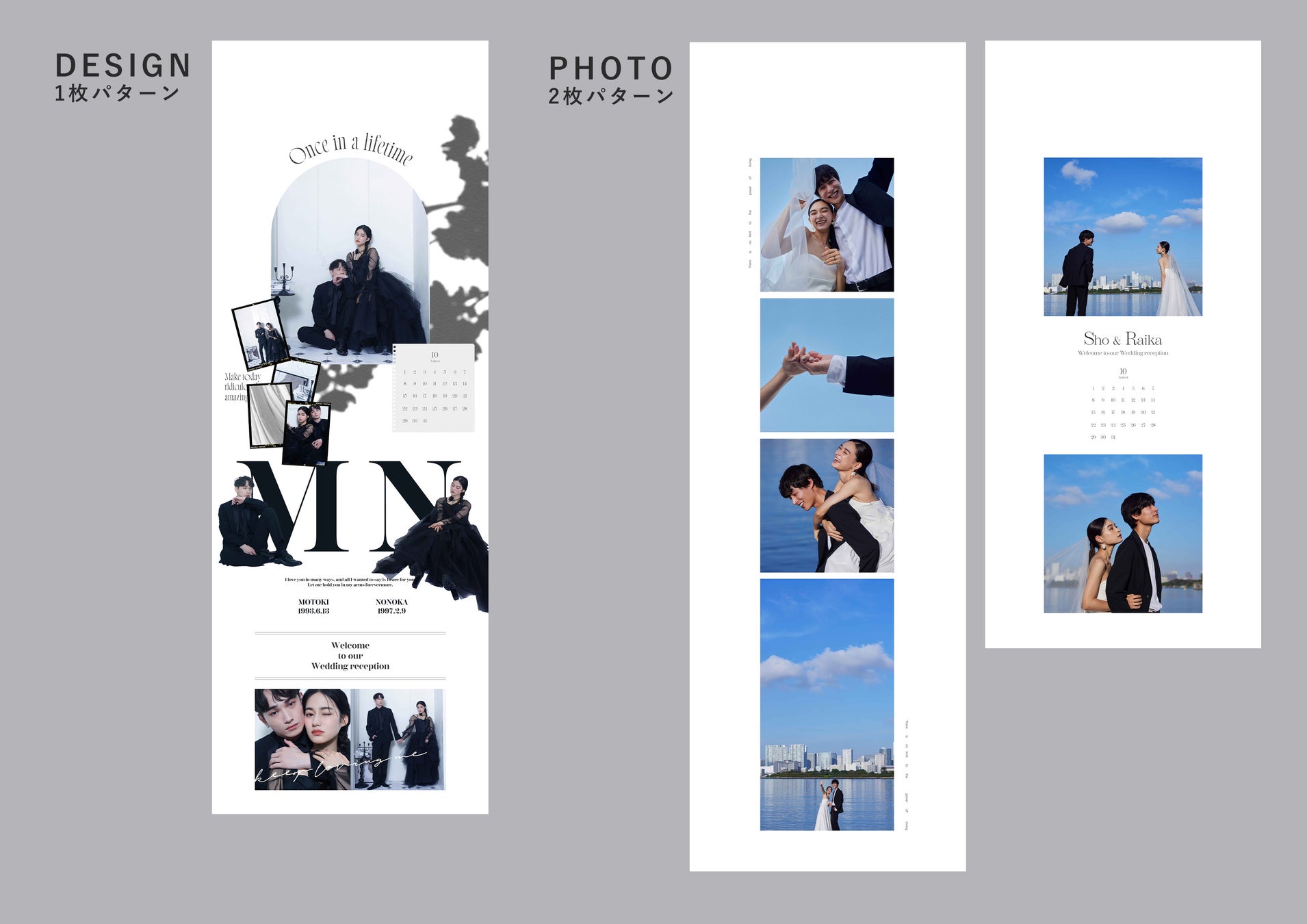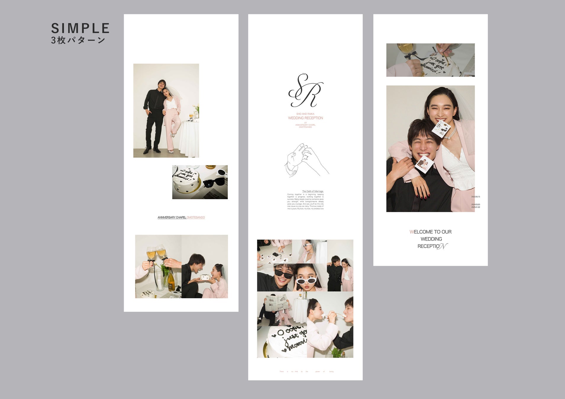 デザインは全3パターン。それぞれのデザインが1枚、2枚セット、3枚セットでの展開になり、挙式会場のディスプレイエリアに合わせてご自由にお選びいただけます。