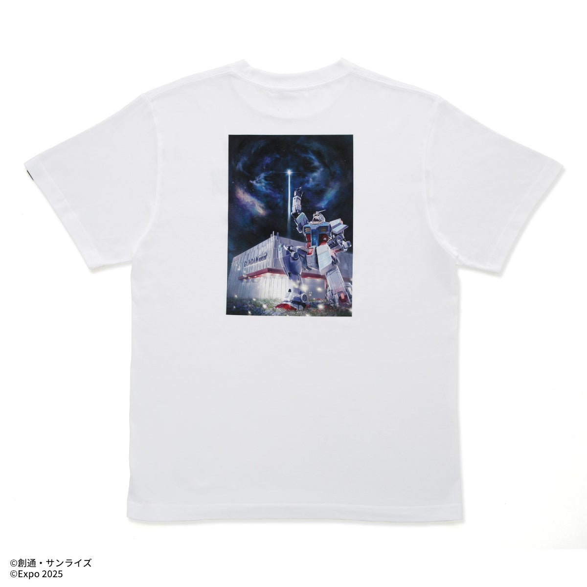 『GUNDAM NEXT FUTURE PAVILION』の象徴的なティザービジュアルを背面に大胆にプリントし、フロントはワンポイントロゴデザインの着用しやすいデザイン。