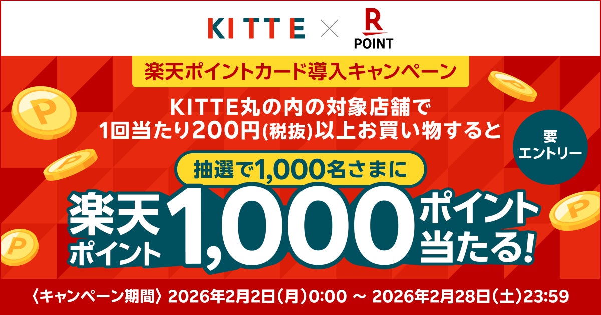 本導入を記念して、2026年2月2日(月)から2月28日(土)まで、「KITTE丸の内 楽天ポイントカードサービス開始記念!抽選で1,000名さまに1,000ポイント!」キャンペーンを実施します。