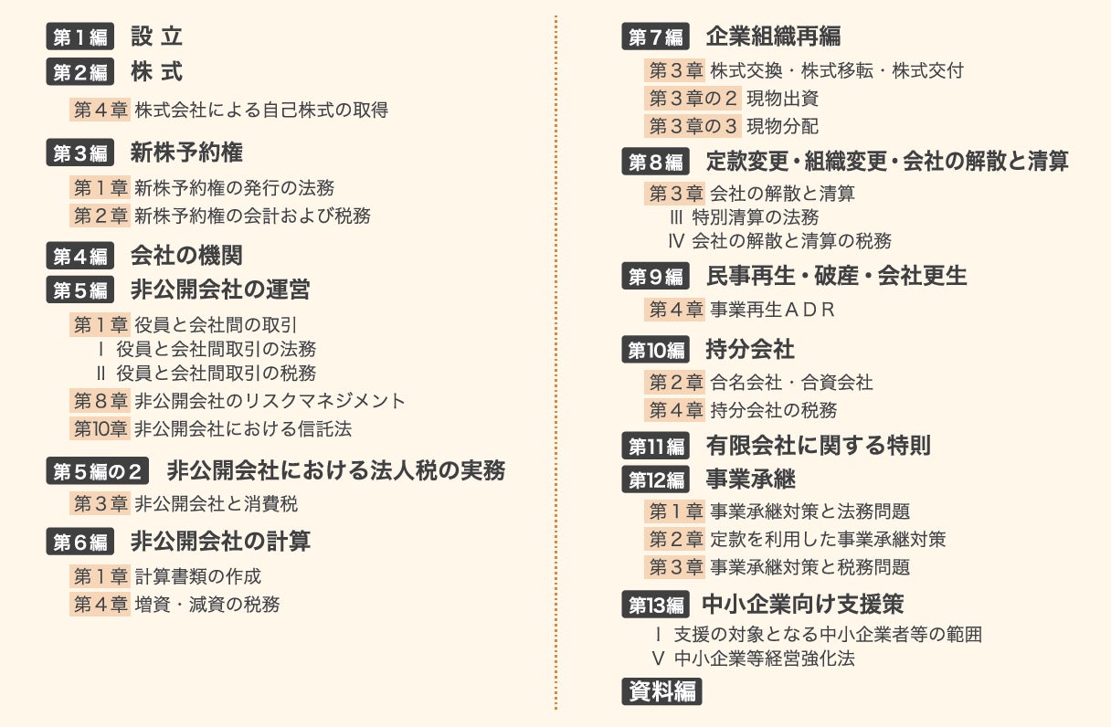 非公開会社にまつわる実務の全てを、設立→株式関係→機関→運営→計算→組織再編→清算・再生の各局面に沿って、法務と税務の両面で解説