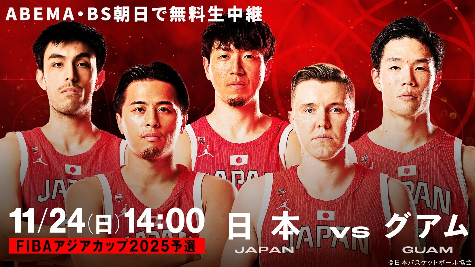 「ABEMA」にて無料生中継 男子バスケットボール『FIBAアジアカップ2025予選 (Window2)』11月24日(日)日本vsグアム