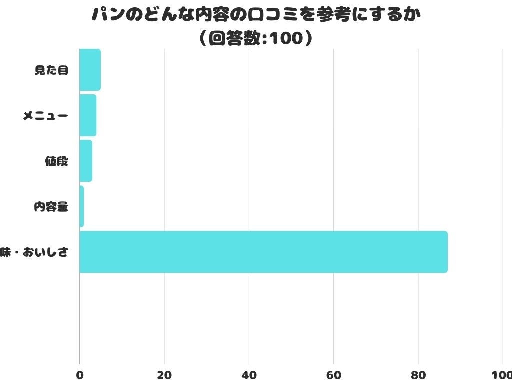 パンのどんな内容の口コミを参考にするかをアンケートにて調査したところ、1位は「味・おいしさ」でした。