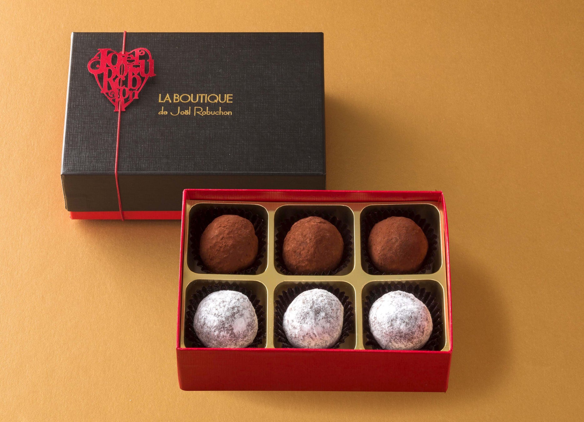 | 商品詳細 | 前年(2023年)に好評いただきました赤とピンクのハートを含む4種の味わいに、三つ星レストラン ジョエル・ロブションの食後の小菓子として提供しているスクエア2種が加わったのバレンタイン限定商品です。 フランボワーズ 【ハート型・赤】 :バラの香りがふわりと広がるフランボワーズ味のショコラ キャラメル&マンダリン 【マカロン型】 :とろりとしたキャラメルにマンダリンの風味が優しく溶け込む ユズ 【スクエア型】 :ミルクチョコレートの味わいの中に上品にユズが香る ラム 【スクエア型】 :ダークチョコレートのコクとラム酒が奏でる芳醇なフレーバー ベルガモット 【半球型】 :ベルガモットが爽やかなミルクチョコレート マリーアントワネット 【ハート型・ピンク】 :気品高く華やかな香りの紅茶とりんごのアンサンブルを楽しむ |