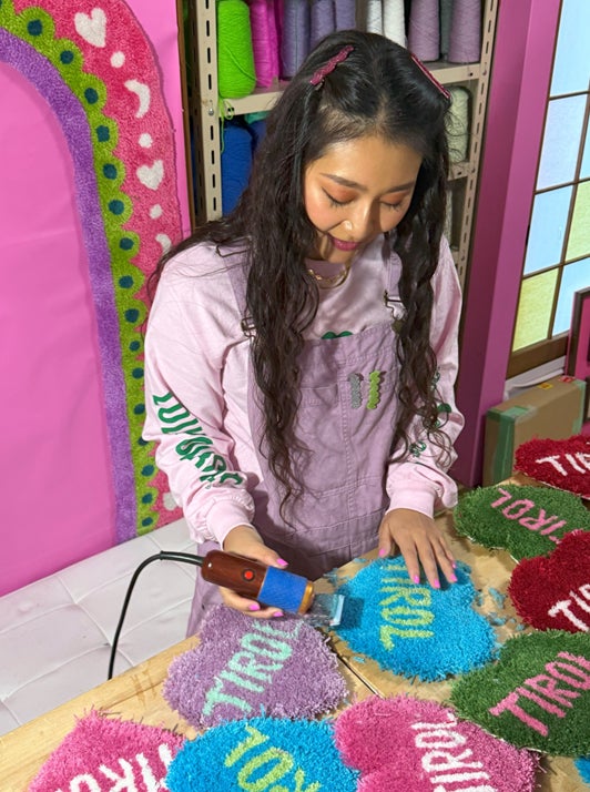 タフティングやレジン、アクリルや陶器など様々な手法を用いて作品を生み出すアーティスト。
