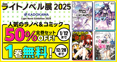 6,700作品以のアニメが見放題(※)の「dアニメストア」( https://animestore.docomo.ne.jp/ )では、12月28日(日)までSHIBUYA TSUTAYAにて行われる「ライトノベル展 2025」の開催を記念して、人気ライトノベル&コミックの全巻セットが50%OFFで購入できるキャンペーンを開催中です。さらに、23作品(ラノベ・コミック)の1巻無料試し読みや、著者サイン本など豪華プレゼントも!「ライトノベル展 2025」×dアニメストアの特別なコラボレーションで、年末年始は思い切りラノベ&コミックを楽しんでください!