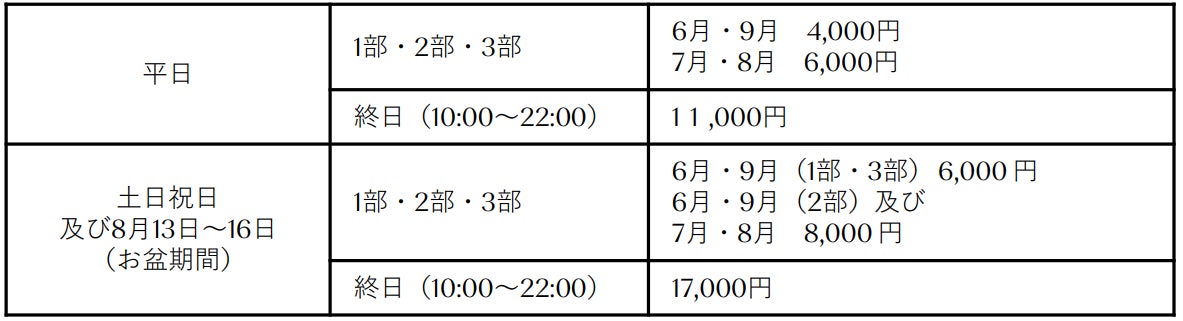 終日(10:00~22:00)平日 44,748円/土日祝日及び8月13日~16日 49,720円