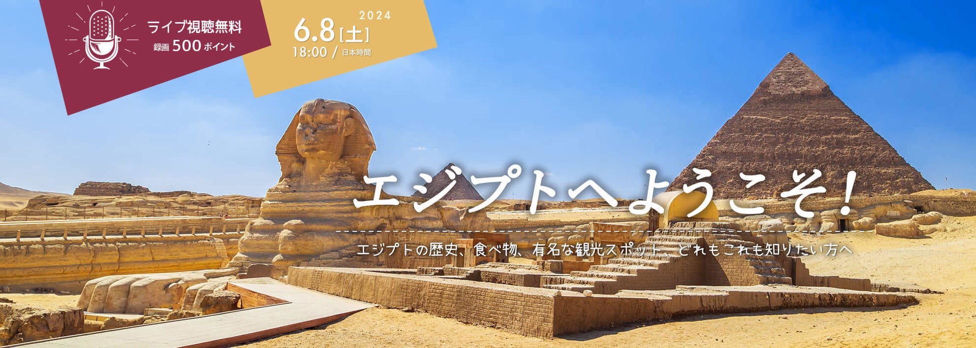 無料オンラインセミナー:エジプトへようこそ エジプトの歴史、食べ物、有名な観光スポット、どれもこれも知りたい方におすすめのオンラインセミナー
