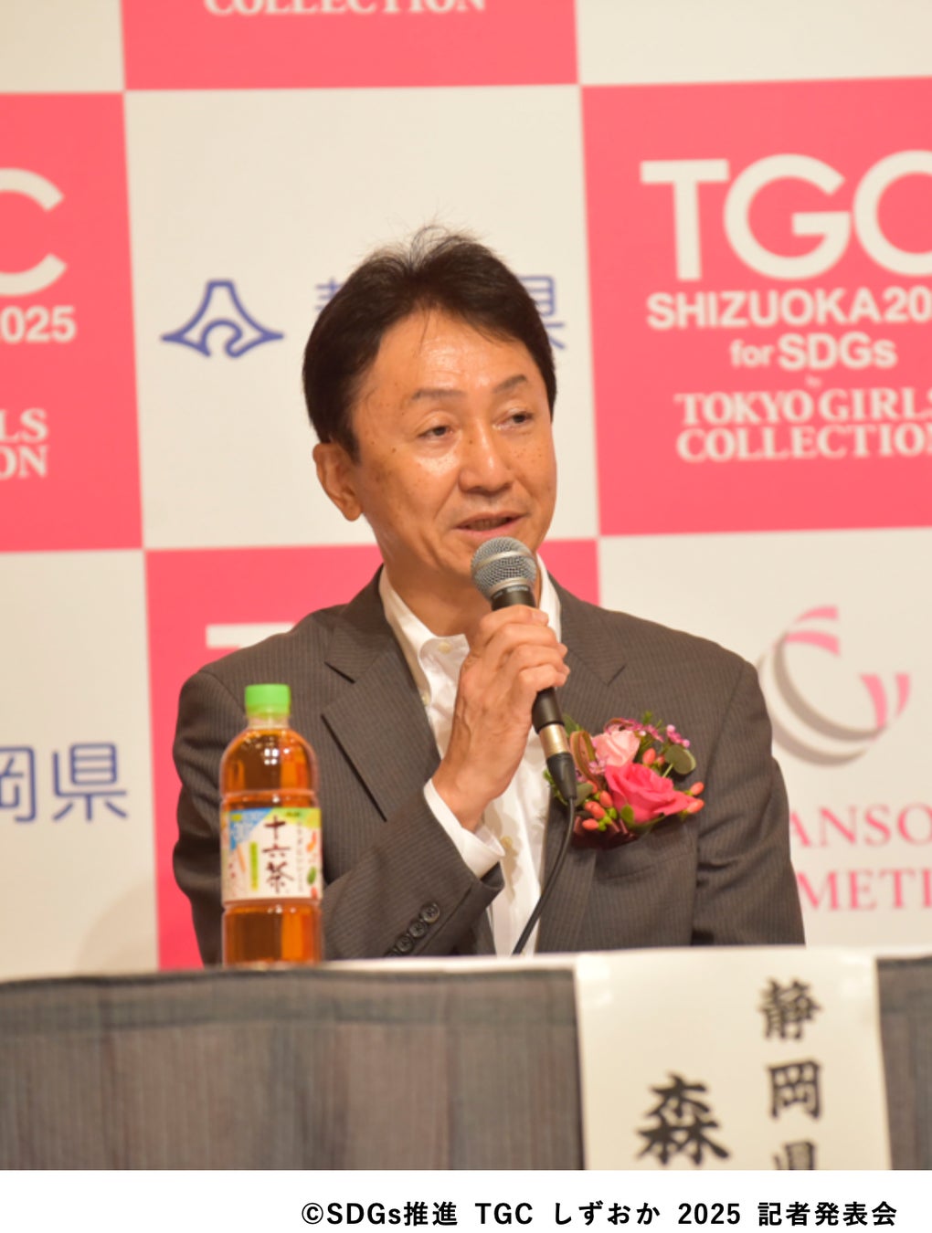 TGCというのはですね、若い人たちを中心に絶大な人気を誇っておりますファッションフェスタでございまして、静岡県で開催されますということ、非常に感動しております。 『SDGs推進 TGC しずおか 2025』が開催されるにあたり、TGCの発信力にご協力をいただきながら、静岡県の観光や食も含めてアピールできたらなという風に思っております。また、実は静岡県というのは9競技18のプロチームがある、スポーツの発信ができるエリアということもございますので、合わせてそういったこともアピールできたらなという風に感じているところでございます。