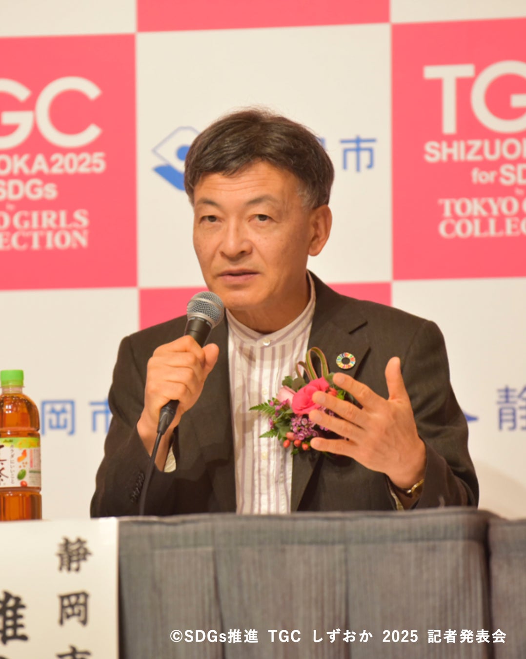 さらに、難波喬司(静岡市 市長)、森貴志(静岡県 副知事)、そして『SDGs推進 TGC しずおか 2025』のプラチナパートナーである株式会社シャンソン化粧品 マーケティング部 部長の關惠らも登壇。開催に向けて想いを語りました。(以下、記者発表会でのコメント抜粋)