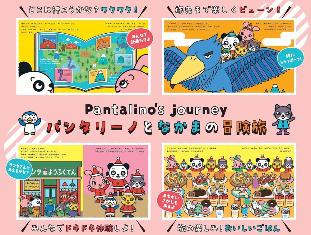今回は「旅を通じて豊かな心をはぐぐむ」をコンセプトとした旅育(たびいく)えほんです。旅が大好きな主人公「パンタリーノ」とともに旅に出て、なかまとの絆を感じながら新たなものと出会い、成長していく物語には、さまざまなあそびや体験、冒険がちりばめられ、読み進めるうちに旅への興味や関心が高まる内容です。