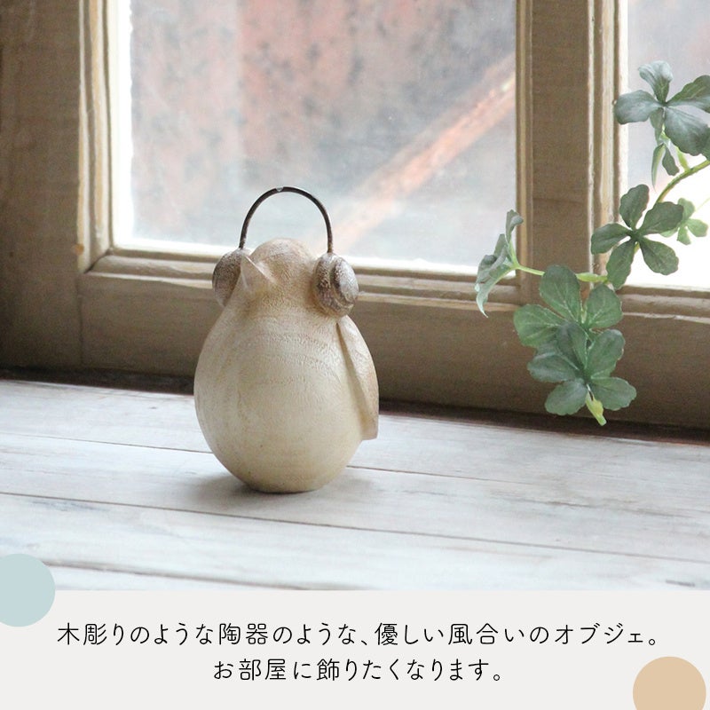 木彫りのような陶器のような優しい風合いのオブジェです。