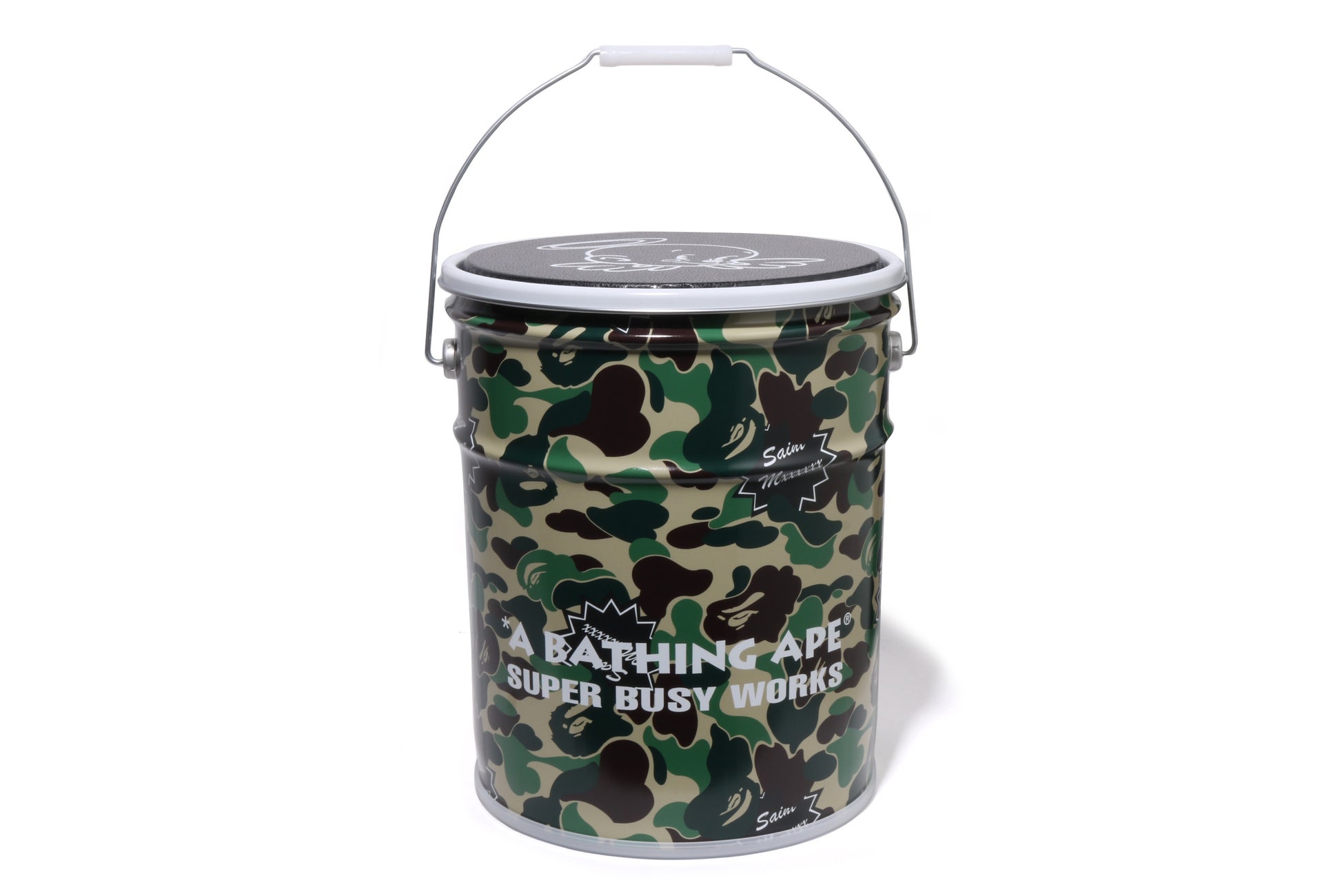 ペール缶スツールは、ABC CAMOをベースにした©SAINT Mxxxxxxオリジナルのカモ柄を採用しました。