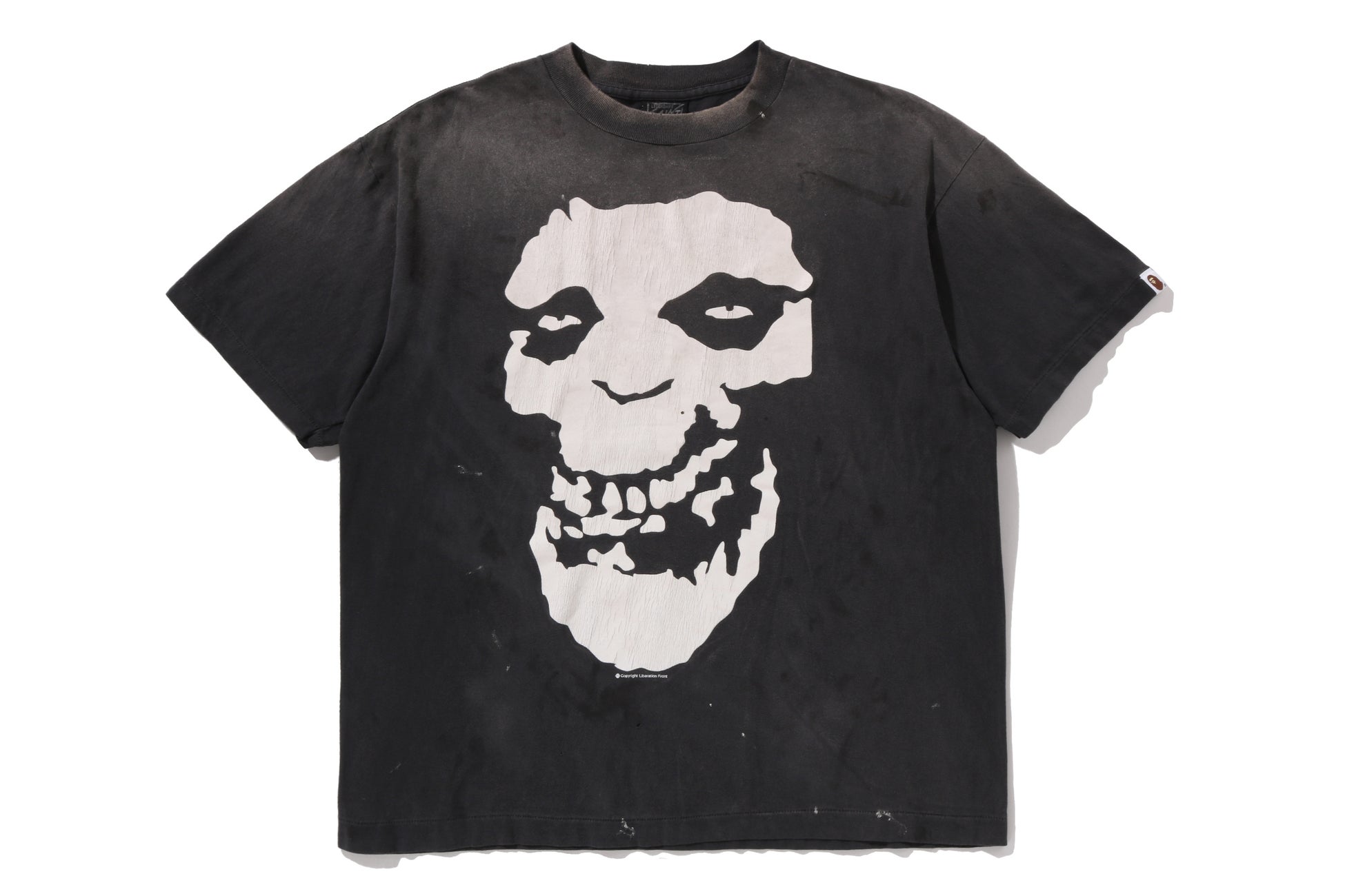 各アイテムのボディには、ダメージや色落ち、プリントの自然なヒビ割れといった、©SAINT Mxxxxxxらしい本格的なヴィンテージ加工を随所に採用。着古したかのようなリアルな表情が、グラフィックの存在感をより際立たせています。また、左袖口にはAPE HEADのピスネームをあしらい、本コレクションが特別なものであることをさりげなく示しています。