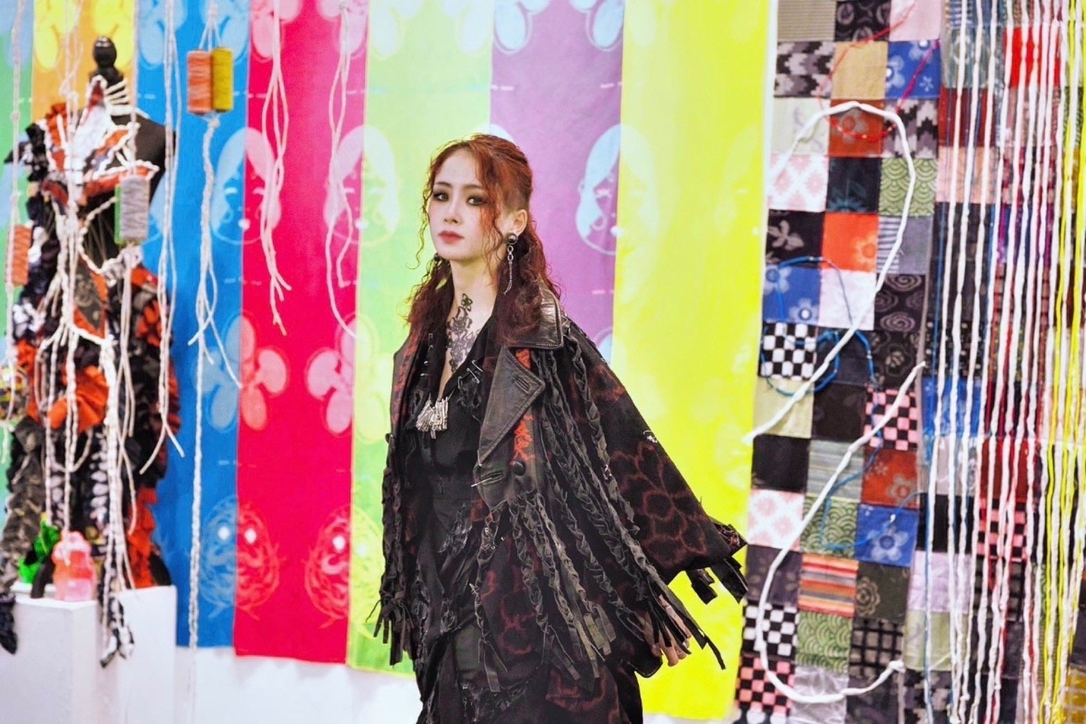 「私はNYの現地に伺い、作品の設営や英語でのプレゼンテーション、パーソンズ美術大学で行われた特別授業に参加しました。クリエイティブでは、今回のために坂田織物様が一から制作をしてくださった久留米絣のグラフィックデザイン、そして久留米絣のハギレや括り糸をアップサイクルしたドレス、装飾を担当し、福岡県久留米市の工房にお伺いし実際に目で見てハギレや資材を選ぶという大変貴重な経験をさせていただきました。今回坂田織物様の取り組みに参加させていただいた中で“本物の価値とは”を改めて考えることができ、また更に久留米絣を好きになりました。今後も伝統文化×ARTで世界に発信をしていきたいと思います」