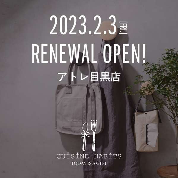 株式会社マグスタイル(代表取締役:井上隆太)が展開するラブストーリーから生まれたキッチン雑貨のブランド 「CUiSiNE HABiTS(クイジーヌ・ハビッツ)」アトレ目黒店が2023年2月3日(金)にリニューアルオープンを致します。