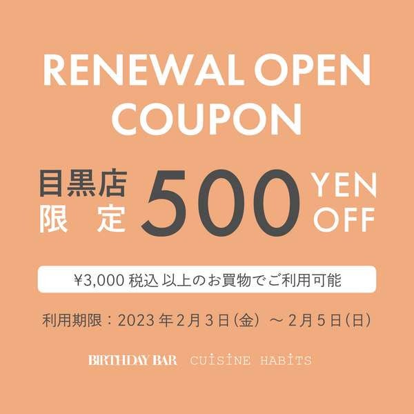 『税込3,000円以上のお買物で使える500円OFFクーポン』を配布いたします。