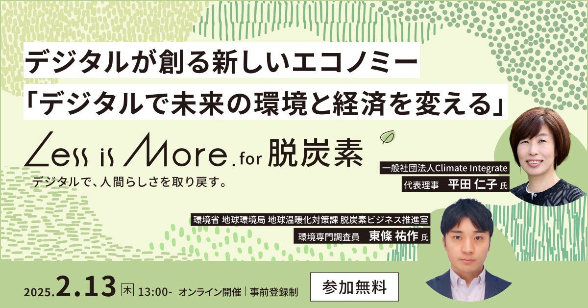デジタルが創る新しいエコノミーを考えるイベント「Less is More. for 脱炭素」を2月13日(木)に開催