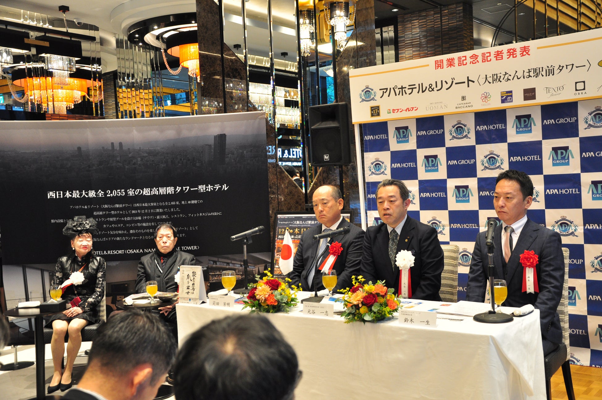 アパグループ社長兼最高経営責任者(CEO)の元谷一志は、記者発表において「大阪の中心地なんばエリアで西日本最大客室数2,055室の大型ホテルを開業できたことを大変嬉しく思う。当ホテルは観光客や訪日外国人旅行者が多いエリアであり、伊丹空港や関西国際空港までの交通至便な立地である。来年には関西万博も控えており西日本の旗艦ホテルとして大きな需要の受け入れが期待できる。アパホテルでは『1ホテル1イノベーション』をスローガンに、お客様が快適にお過ごしいただけるホテルを追求し、今回は新たに6つのイノベーションを施している。また、テナント数も多く、様々な施設も充実しており、総力を挙げてお客様を向かい入れる体制ができた。日本のホテルを牽引し、多くの方にご利用していただき、長く愛され続けるホテルとしていきたい。昨今、日本において外資系ホテルの進出が進んでいるが、本年、アパグループでもシアトルにアメリカで初のホテルを取得するなど、世界に向けて拡大を進めている。ポートフォリオに北米資産を加えることで日本ブランドとして世界と勝負していきたい。」と述べた。