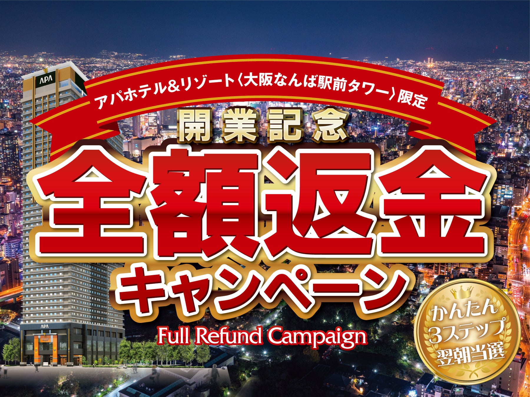 アパホテル&リゾート〈大阪なんば駅前タワー〉限定 開業記念 全額返金キャンペーン |
