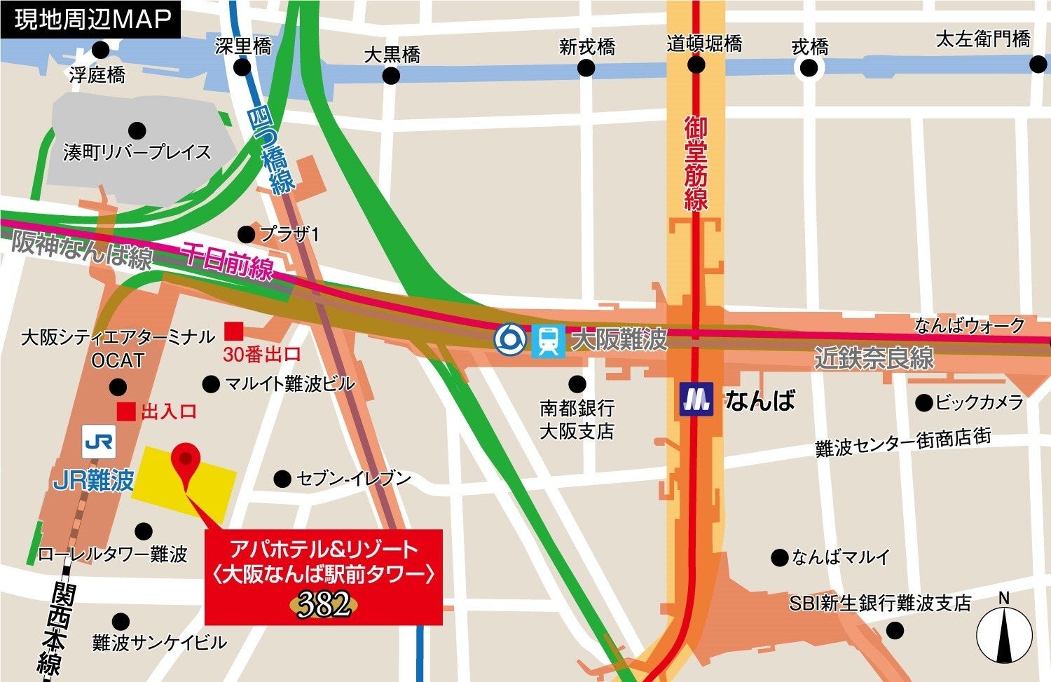 ・JR「難波駅」(東出入口)徒歩1分 ・OCAT[大阪シティエアターミナル](東出入口)徒歩1分 ・阪神・近鉄「大阪難波駅」(西改札)徒歩2分 ・大阪メトロ御堂筋線・四つ橋線・千日前線「なんば駅」 (30番出口)徒歩2分 ・南海「なんば駅」徒歩7分 |