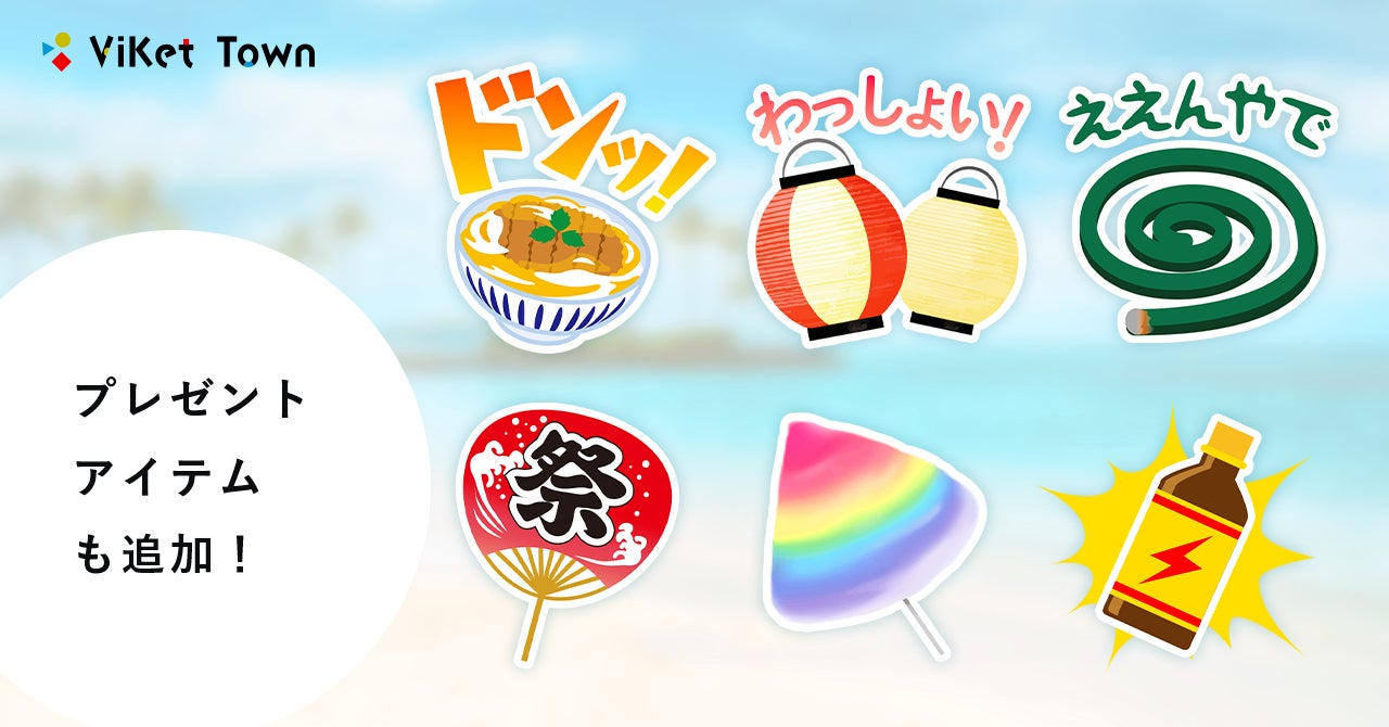 ViKet Townではプレゼントやメッセージ付きアイテムも毎月更新中。7月のイベントを盛り上げるお祭りモチーフや夏らしいメッセージアイテムも新登場!