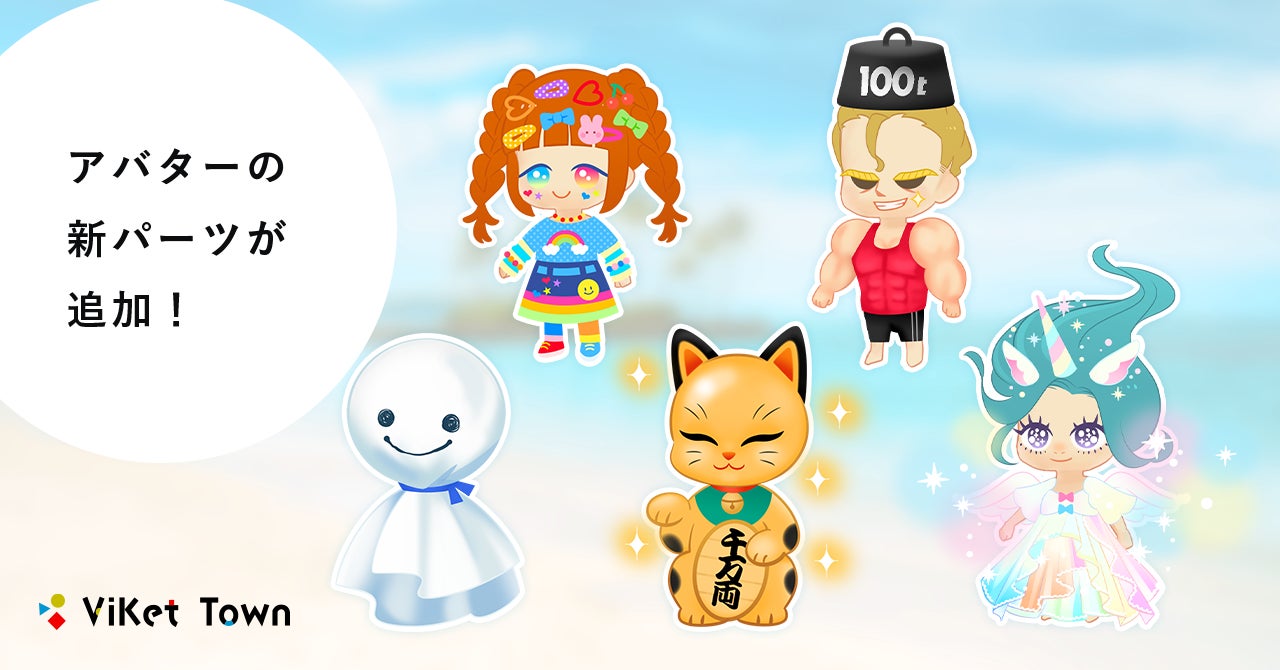 「ViKet Town(ビケットタウン)」では自分となって働くアバターが存在します。アバターには、頭、髪、目、口、服装、数種類の初期パーツから選択する事ができ、理想とする自分を生み出す事が可能です。 アバターを通してのコミュニケーションは、年齢、国籍、性別、見た目、生まれ持ったルーツによる様々な偏見をなくし、 純粋な気持ちで仲間とのプロジェクトの成功を目指す事ができます。 自分に自信がない人でも、働く新たな自分を生み出すことで、コミュニケーション能力の向上も期待でき、異空間で働くアバターは、様々なアイテムを身に着け、仲間とのコミュニケーションのきっかけともなります。今回は、7月にちなんだ七色のレインボーパーツや、梅雨明けの晴れ模様にぴったりのにぎやかなアバター衣装が新登場!
