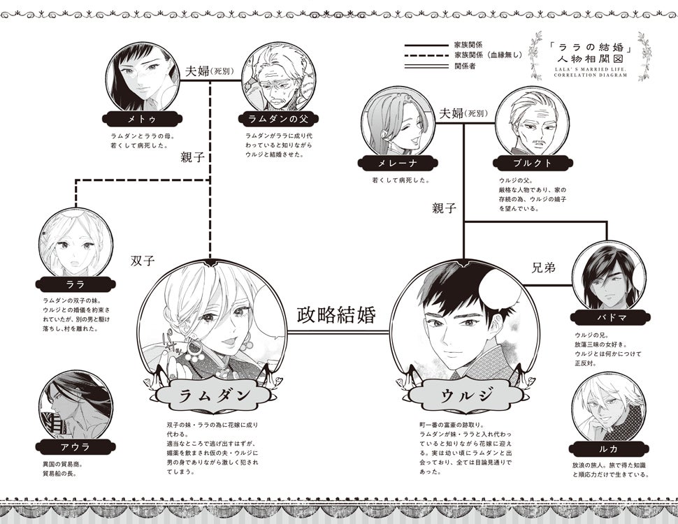 ブルクトに男だということがバレ、自分のせいでブルクティーン家が瓦解していくことを恐れたラムダンはウルジを拒絶し家を後にする。自分らしく生きる道を探すラムダンとは対照的に、残されたウルジは独り、とある決意をかためるが――異国の嫁入り奇譚6巻!