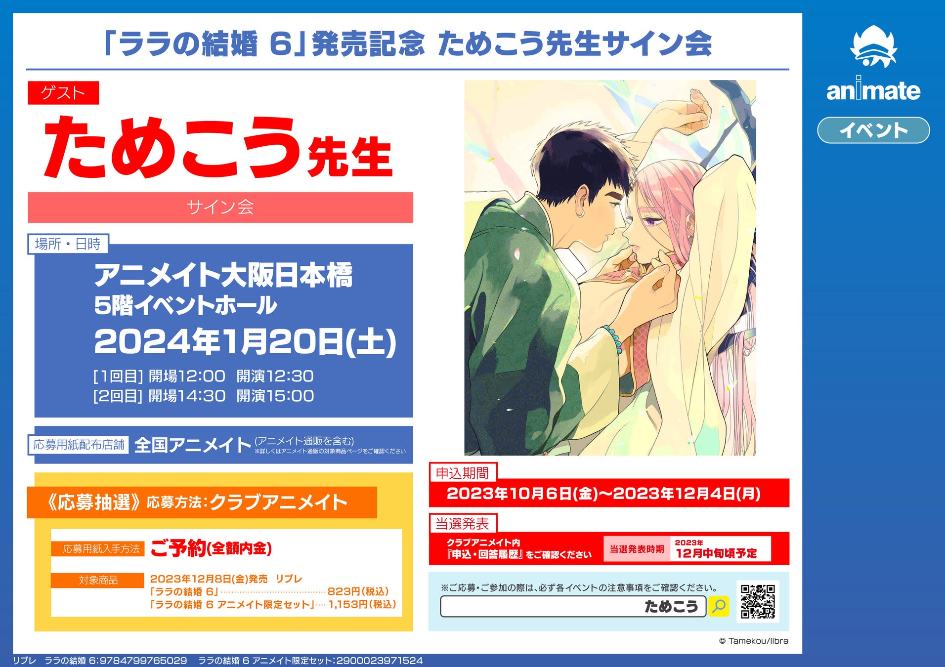 コミックス「ララの結婚 6」(著:ためこう)12月8日発売決定! 発売記念サイン会も開催決定!!