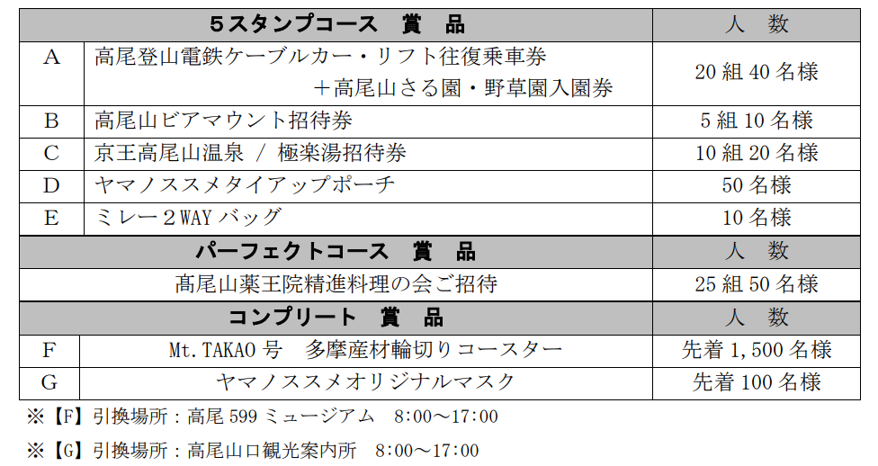 応募方法はスタンプシートにある応募ハガキに必要事項を記入し、高尾山口駅、高尾駅設置の投函箱へ投函