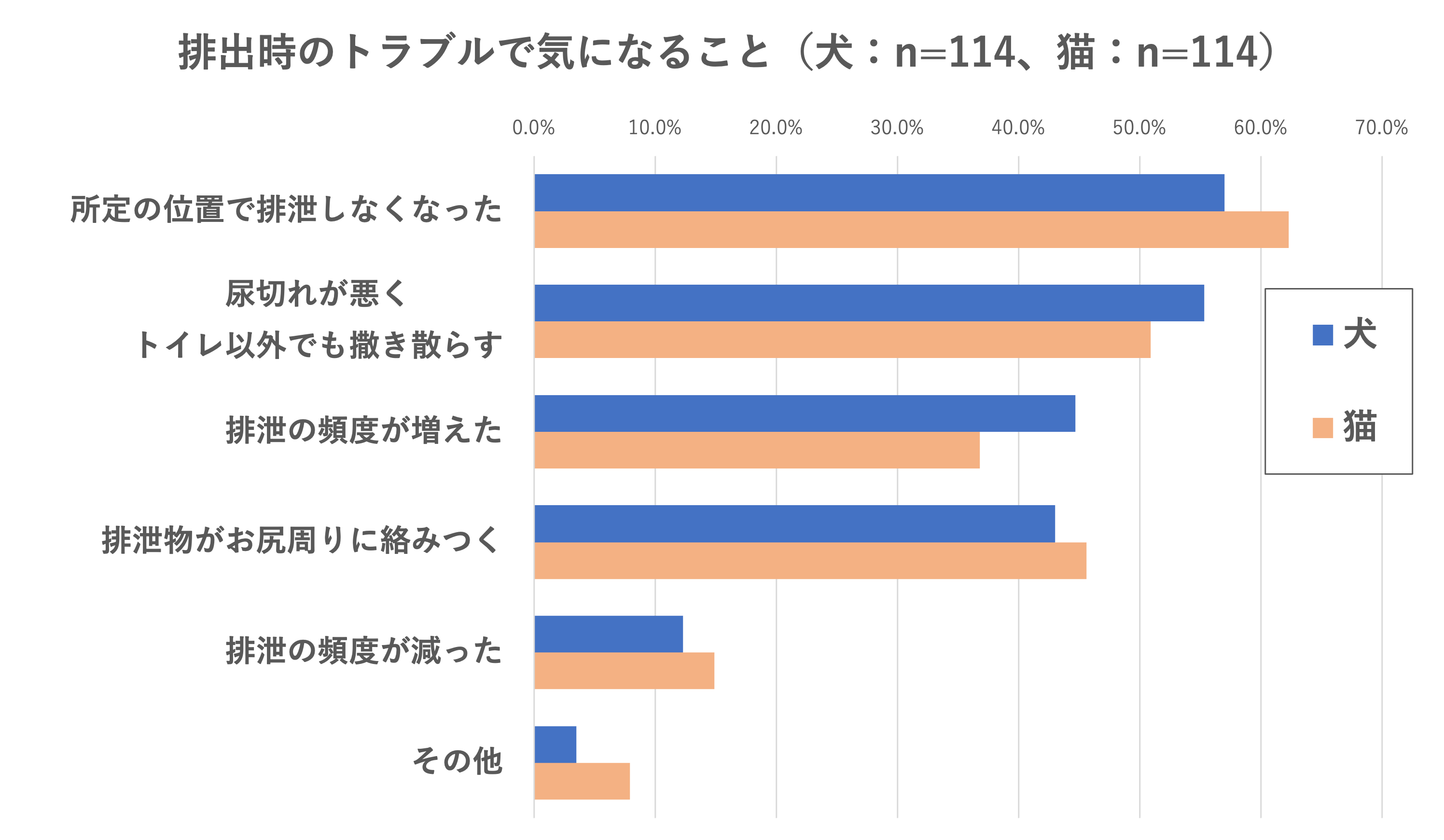 ■犬・猫共通の悩みは「排泄時のトラブル」。所定の位置で排泄しなくなるなど、習慣に変化あり!