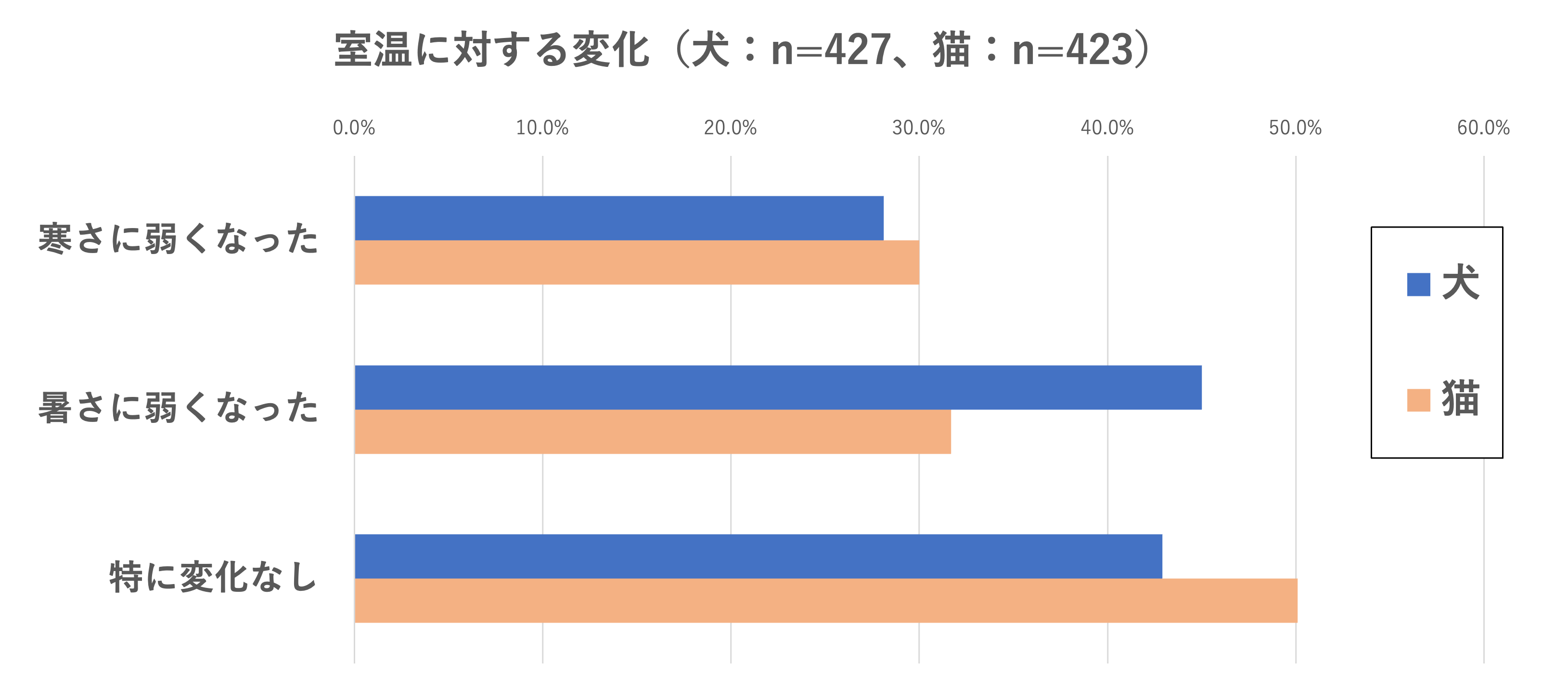 ●半数以上のペットが室内の暑さ・寒さに弱くなっている。