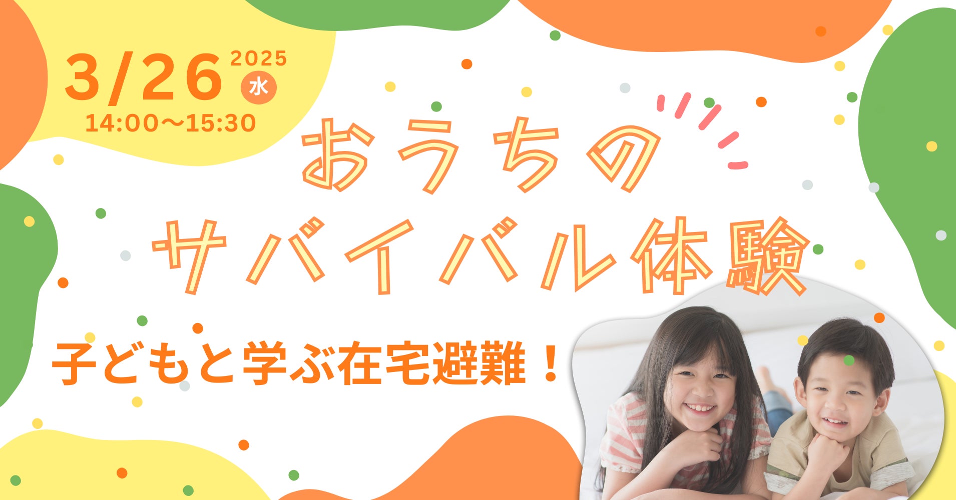 3月26日(水)春休みに子どもと学ぶ在宅避難体験イベント「子どもと学ぶ在宅避難!おうちのサバイバル体験」 開催