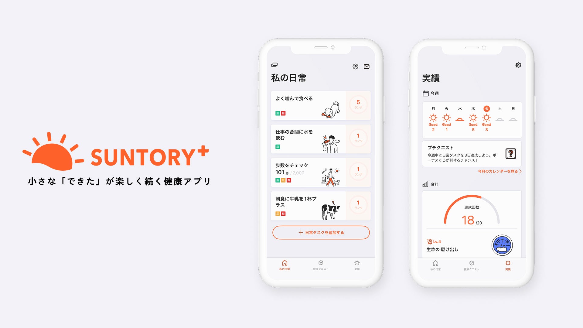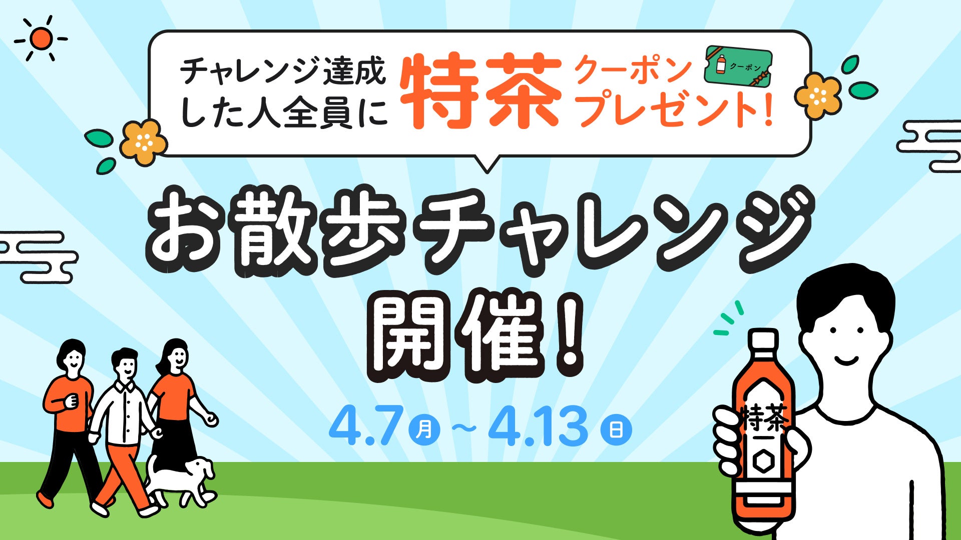 「SUNTORY+」は、25年4月7日(月)の「健康の日」を、一人ひとりが健康で元気な生活を送るための自己管理をするきっかけづくりにできればと考え、新たな機能表示が許可されたサントリー緑茶 伊右衛門「特茶」(特定保健用食品)と連動した期間限定キャンペーン「お散歩チャレンジ」を実施します。