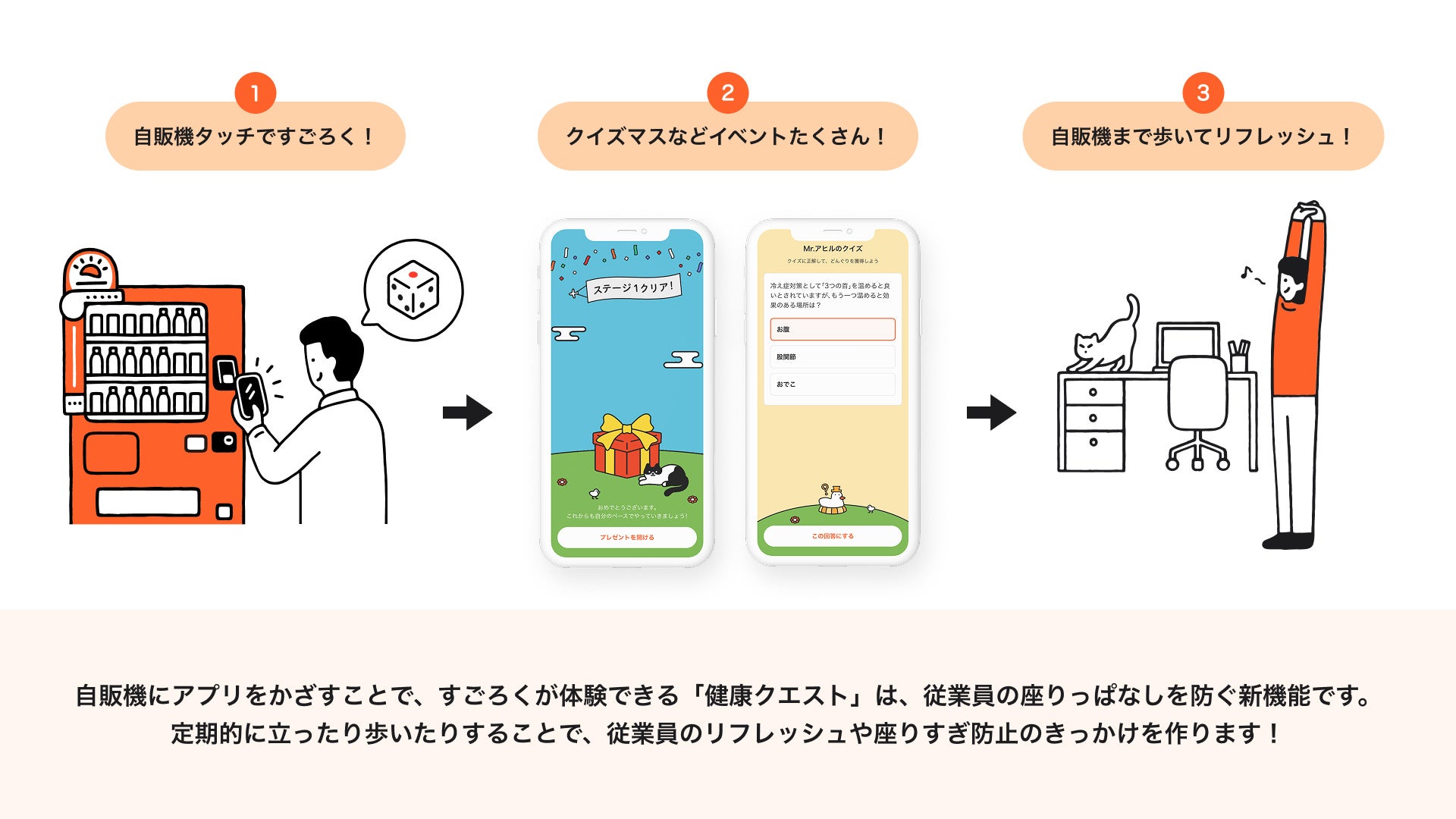 自販機にスマホを接触させると「すごろく」ができる新感覚の健康アクション