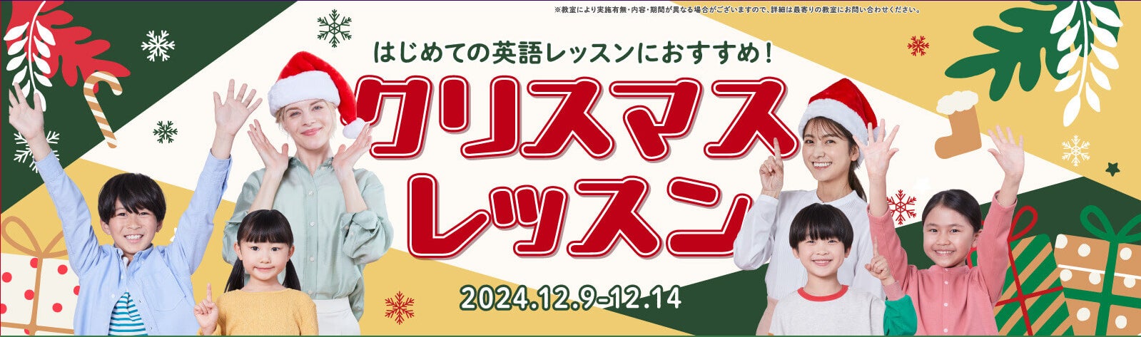総合教育サービス事業の株式会社やる気スイッチグループ(東京・中央区、代表取締役社長:高橋 直司)が展開する子ども向け英語・英会話スクールのWinBe®(ウィンビー)は、2024年12月9日(月)~14日(土)の期間中にクリスマスレッスンを開催いたします。すでにWinBeにお通いの生徒さまはもちろん、WinBeにご興味のある方、ご検討中の方・他スクールの生徒さまもワンコインでご参加いただけます。