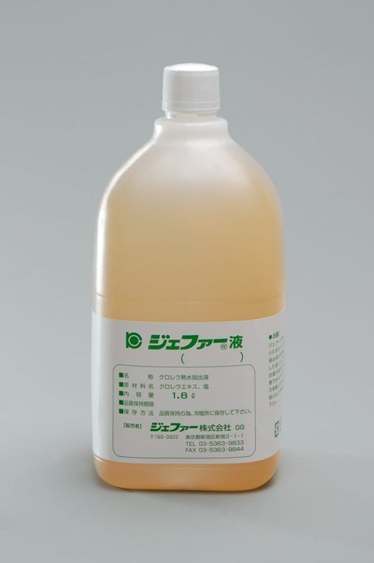 ジェファー社は、石垣島産の微細藻類クロレラの熱水抽出液(以下「クロレラエキス」)を用いた製品「ジェファー液」をはじめ、クロレラ製品やジェファーバモント酢等の健康食品を販売しています。ジェファー液は、麺の味やコシの向上、魚の臭み軽減を目的として、麺や冷凍食品の製造時に調理用添加物として利用されている他、ラーメン店や製麺企業でも長年愛用されています。