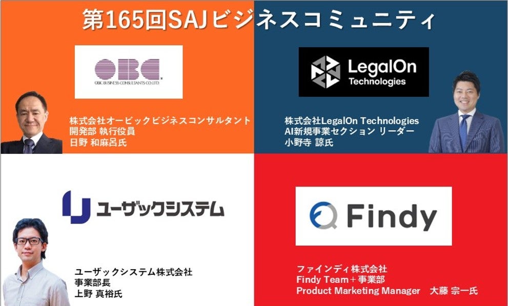 株式会社LegalOn Technologies(本社:東京都渋谷区、代表取締役 執行役員・CEO:角田 望)は、11月11日(火)15時30分に一般社団法人ソフトウェア協会(SAJ)と一般社団法人コンピュータシステム販売店協会(JCSSA)が共催する「第165回SAJビジネスコミュニティ」にAI新規事業セクション リーダーの小野寺が登壇します。