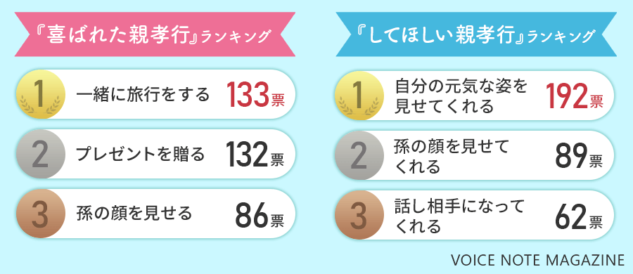 ボイスノートマガジン 喜ばれた親孝行に関するアンケート調査